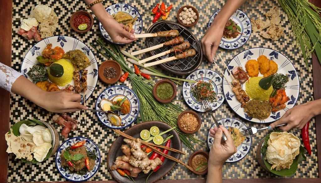 L’utilisation généreuse d’épices fraîches comme le curcuma, le gingembre et la citronnelle définit l’identité culinaire locale. Le canard fumé, ou Bebek Betutu, cuit lentement dans des feuilles de bananier, incarne ce savoir-faire ancestral.